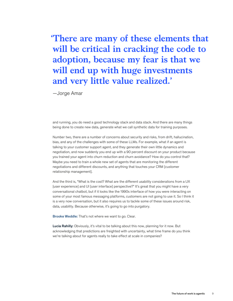 未来18-24个月,代理型AI将进入规模化应用阶段。企业需完善技术栈建设,重点关注数据安全(如防止30%的漂移风险)和成本控制。建议将AI定位为”数字员工”,通过人机协作实现组织效能最大化。AI劳动力占比预计2025年将达15-20%,但需配套投入员工再培训。