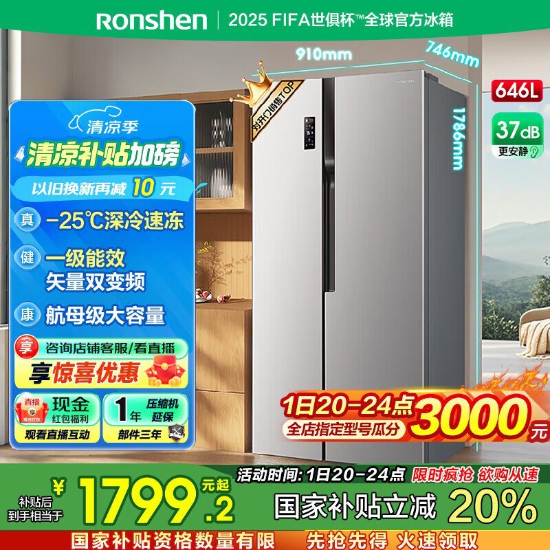 容声646L风冷冰箱,多种优惠后1726元