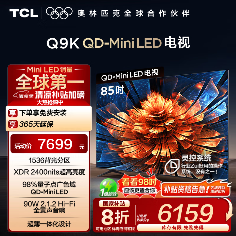 TCL 85Q9K电视限时特惠6151元