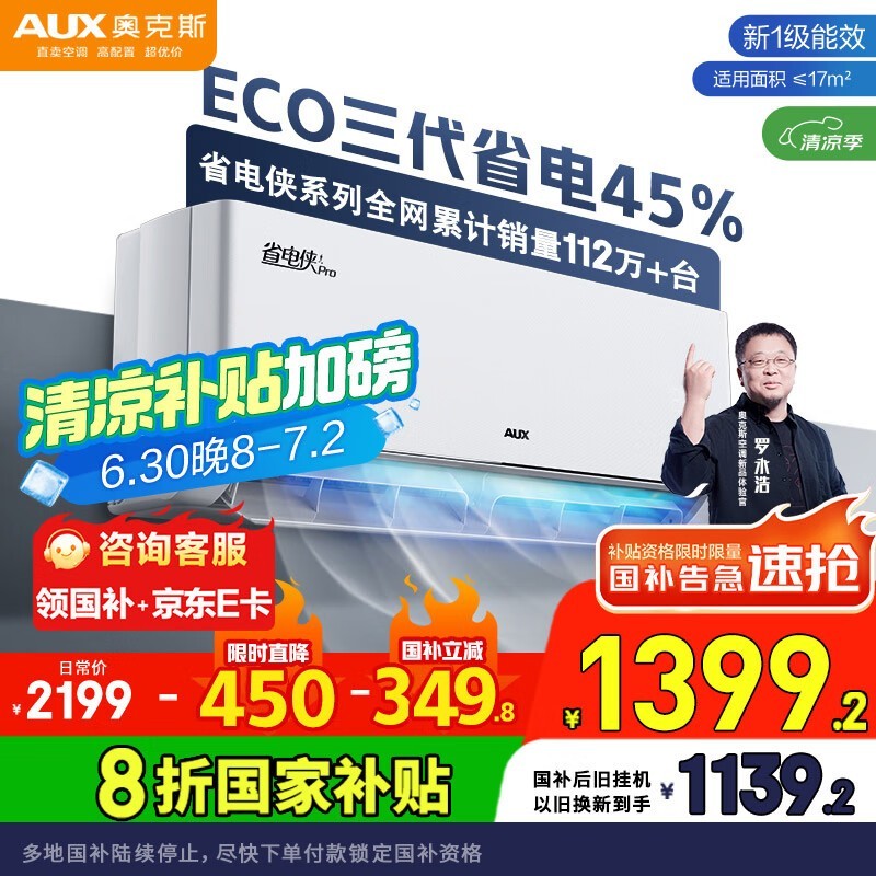 奥克斯省电侠Pro空调新一级能效,节能静音舒适体验