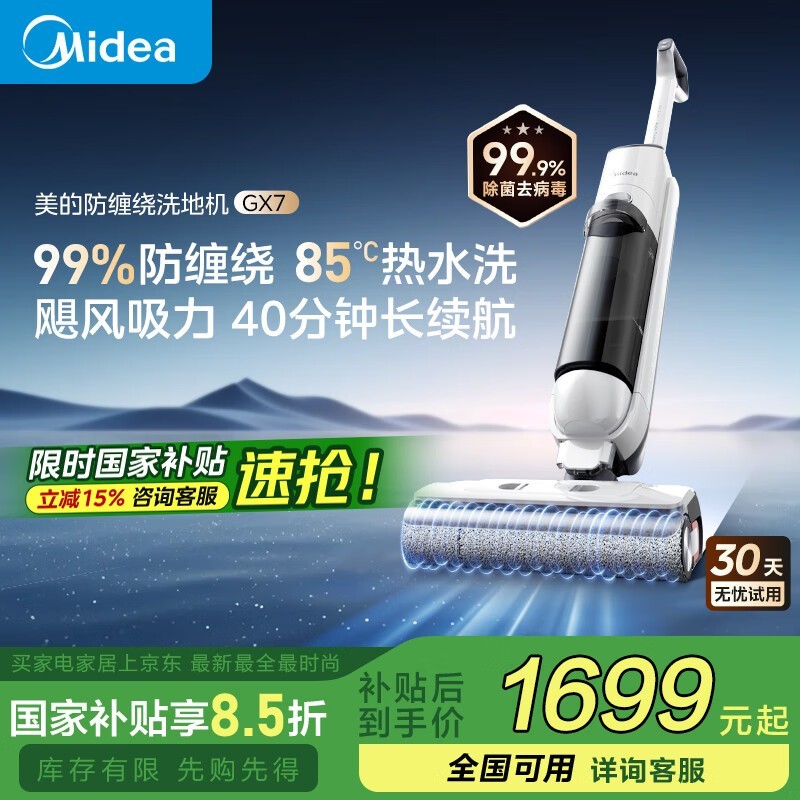 美的GX7防缠绕洗地机限时特惠1182元