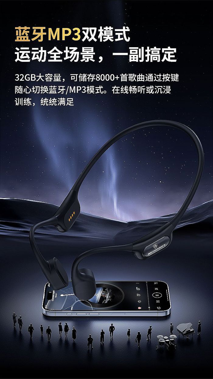 谁说骨传导等于音质妥协?圣吉尼用双麦抗风噪+CVC降噪系统打破偏见。在海边间歇跑测试中,同行入耳式耳机因风噪被迫摘机,X23却通过定向传音技术将漏音控制在30分贝以下——邻跑者贴近10cm也无法听见播放内容。