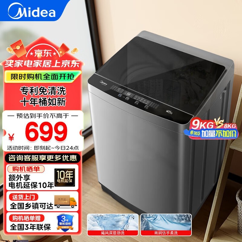 美的波轮洗衣机8kg超净洗MB80V36T促销价629元