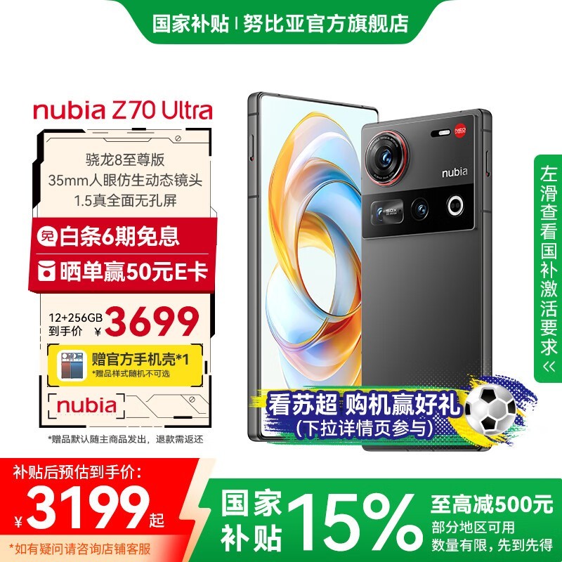 努比亚Z70 Ultra 5G(12+256GB黒玺版)京东优惠价3199元