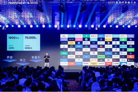 就在前一天,首届魔搭开发者大会在北京举办,全球200余位AI领域专家学者和数千名开发者参会分享,分别来自谷歌、英伟达、英特尔、Midjourney、阿里巴巴、字节跳动、腾讯、蚂蚁、DeepSeek、MiniMax、阶跃星辰、群核科技等头部企业,以及中科院、上海人工智能实验室等知名科研机构。