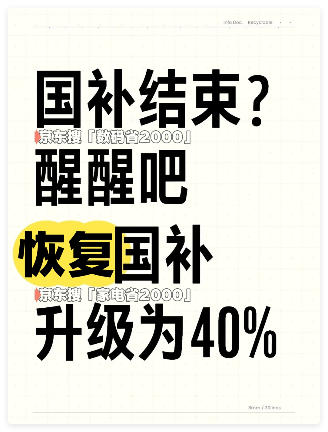 三、7月重启行动指南:三步锁定末班车红利 1. 高价值商品优先下单 - 空调、新能源车、5000元以上手机额度最紧缺,建议7月重启首周抢购; - 预警地区(河南、湖南)需提前行动:家电最晚11月底,汽车材料10月前提交。 2. 双通道抢资格,叠加省更多 - 线上入口: * 家电 → 京东搜“家电省2000”; * 手机 → 搜“手机省500”(首次搜索后可每日点历史记录快速进入); - 地方加码: * 江苏、广东:“国补+消费券”综合补贴比例冲至30%; * 陕西:手机满3000减300、满5000减500。 3. 避坑三大雷区 - 发票无效:抬头必须为“个人姓名”,注明型号+SN码(企业发票作废); - 退货损失:仅退实付金额!例:5000元手机退货只退4500元; - 价格暗涨:用比价工具核对30天历史价,防“先涨3000再打折”套路。 政策展望:末班车窗口加速收窄 尽管政策延续至年底,但全国资金池消耗率已超70%,河南、湖南等地或因额度提前耗尽,在12月中旬关闭通道。