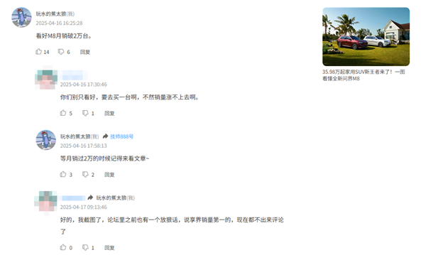 快科技7月2日消息,早在4月份问界M8上市后的时候,在本站一篇文章的评论区我曾和一读者打过一次赌。