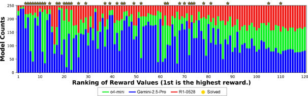 图 | 在 Pass@250 条件下,使用 Multi-LLM AB-MCTS 解决 ARC-AGI-2 各项任务时所使用的大模型比例(来源:Sakana AI)