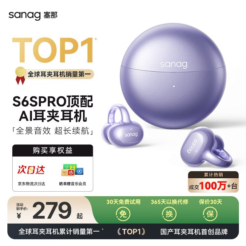 塞那S6S Pro耳夹式耳机京东优惠价185元