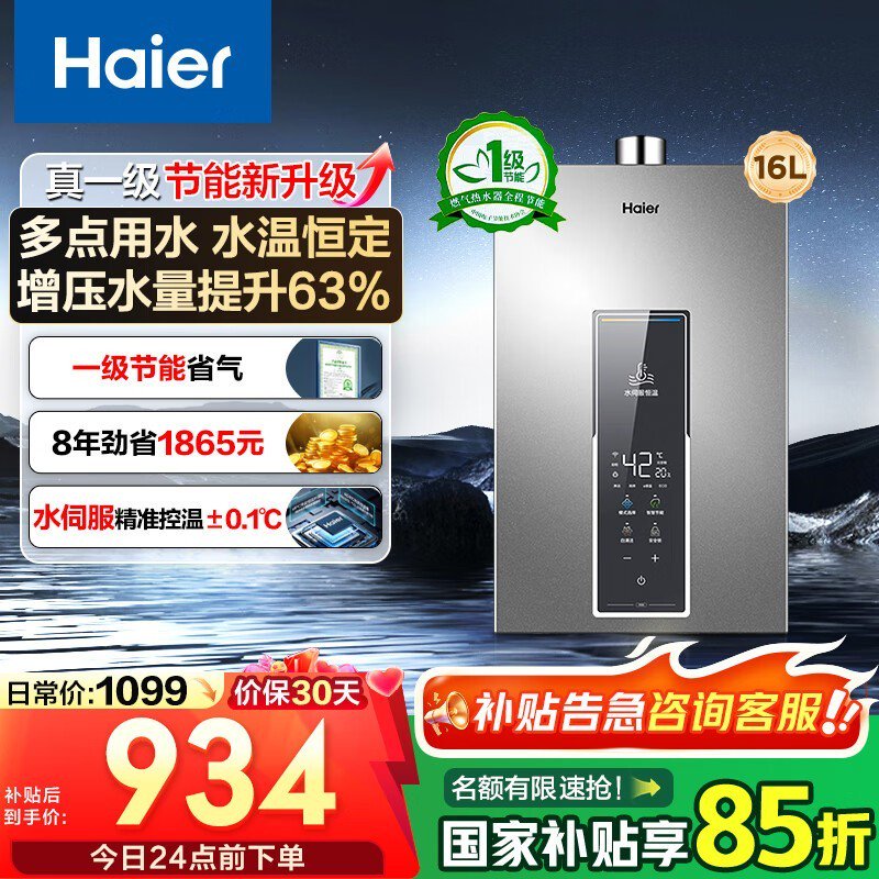 海尔16L变频燃气热水器京东限时优惠