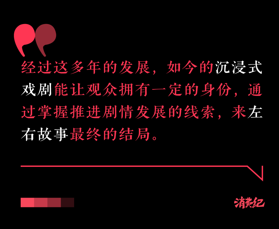 以往被动式的娱乐消费,已经难以满足年轻人。现在的我们渴望成为故事的一部分,用自己的选择去影响剧情走向。就像在剧本杀里,我们的推理与决策决定着案件的破解;在沉浸式戏剧里,我们跟随着演员的脚步,解锁只属于自己视角的情节。这种深度参与带来的成就感,是传统娱乐难以给予的。
