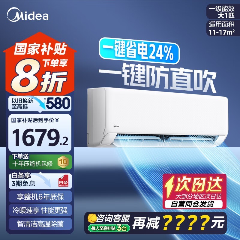 美的空调挂机25年冷静星升级款,节能静音舒适