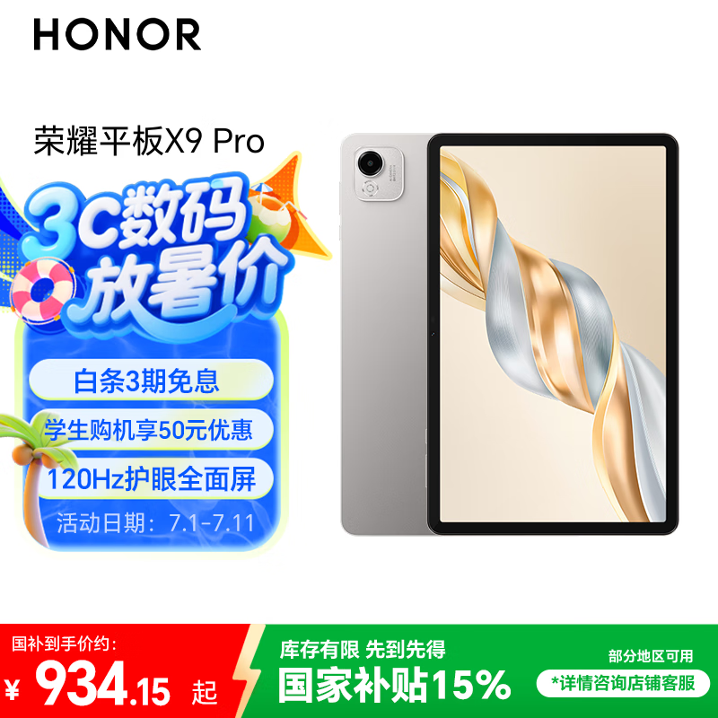 荣耀HONOR平板X9 Pro 11英寸限时特惠934元