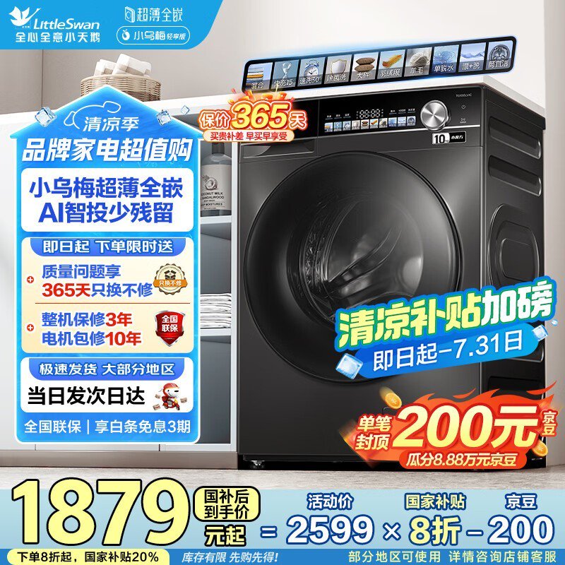 小天鹅水魔方TG100LVIC滚筒洗衣机大促