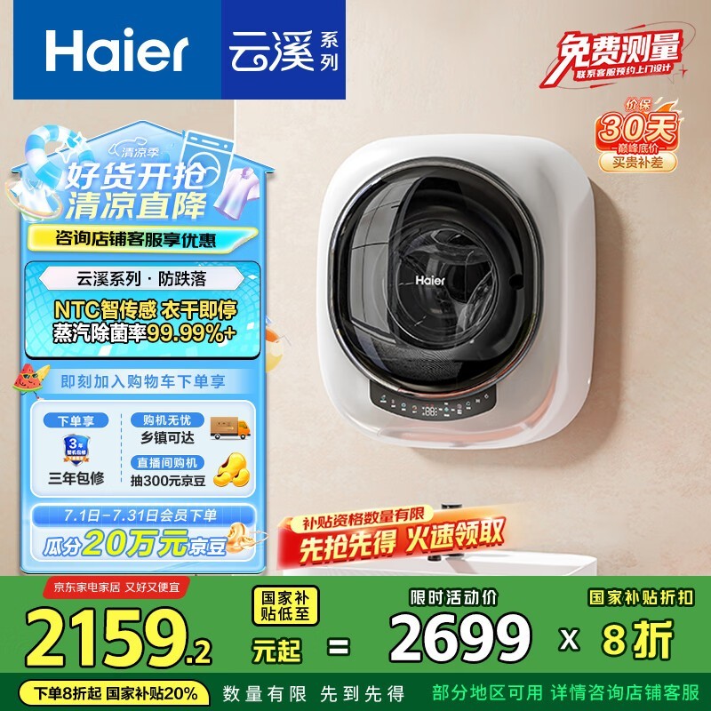 海尔云溪3KG壁挂洗烘一体洗衣机超值优惠