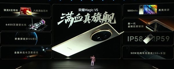 其他方面,荣耀Magic V5还支持鸿雁通信,支持北斗卫星短信,侧边指纹等。