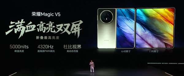 外屏6.43英寸、内屏7.95英寸,均采用高亮原色专业大屏,支持5000nit局部峰值亮度、100%DCI-P3色域、4320Hz超高频PWM调光、HDR Vivid/Dolby Vision,内外屏色彩、亮度一致性拉满。