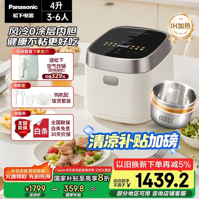 松下4L电饭煲京东优惠,原价1799现1359.49