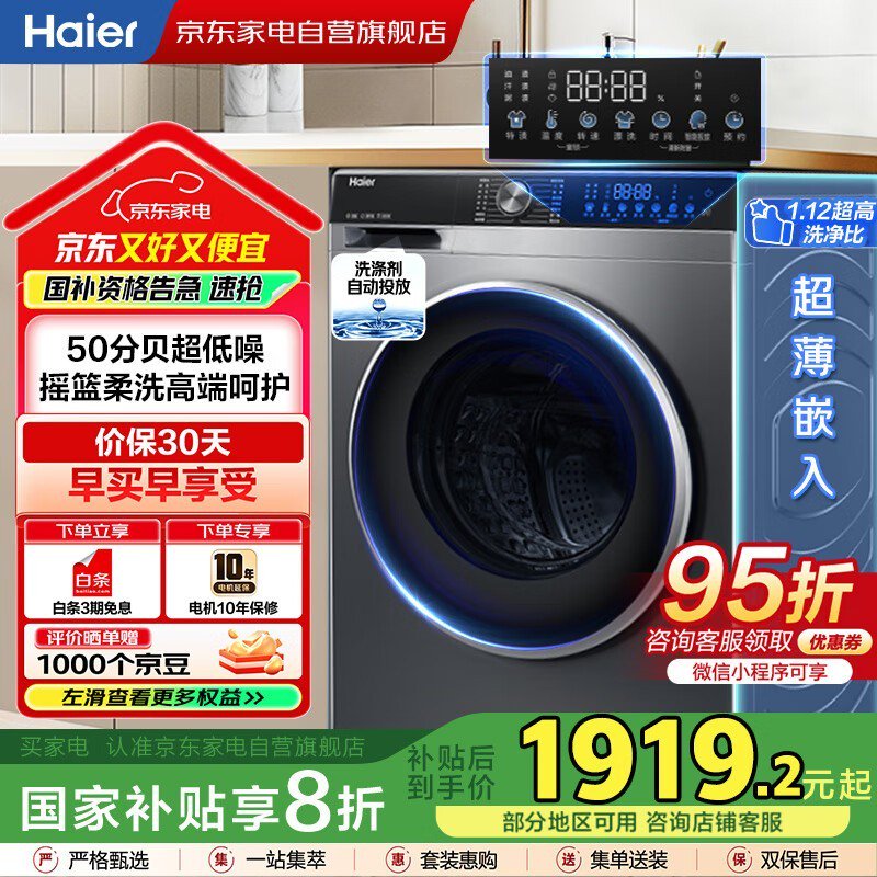 海尔直驱滚筒洗衣机10kg星蕴银,现价1731元起