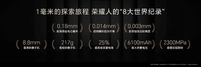 一毫米的极致探索之旅,八大“世界纪录”背后,凝聚了荣耀在创新材料的研发应用、创新架构设计等领域体系化研发能力的突破,荣耀Magic V5打破了行业轻薄、续航、精致耐用的不可能三角。