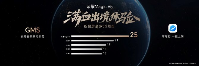 在出境体验方面,荣耀Magic V5支持行业最全的25个5G频段和谷歌全家桶,环球行一键上网;在通信方面,荣耀Magic V5全版本支持北斗卫星通信,天涯海角,时刻在线。