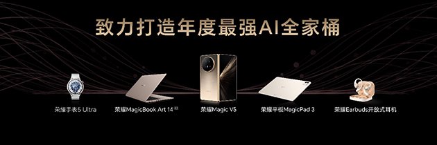 此外,本次发布会荣耀还带来AI终端生态家族的全家桶旗舰新品。全球最薄、地表最强折叠屏荣耀Magic V5,以突破性的制造工艺和技术创新、全面满血的旗舰性能配置,以及AI智能体的多功能应用、多生态覆盖,再次定义折叠旗舰新标准。荣耀MagicBook Art 14 2025上线一语智控功能,实现“搜阅创控”全链路多任务一句话操作,开启AI PC自动驾驶时代;荣耀平板MagicPad3 13.3英寸大屏旗舰平板,首发全局 AI 生产力,业内首次实现与 iOS、鸿蒙、安卓系统手机无缝互传,打造大屏旗舰最强AI平板;荣耀Earbuds开放式耳机支持AI翻译,随时调用YOYO,是用户贴身的AI私人助理。