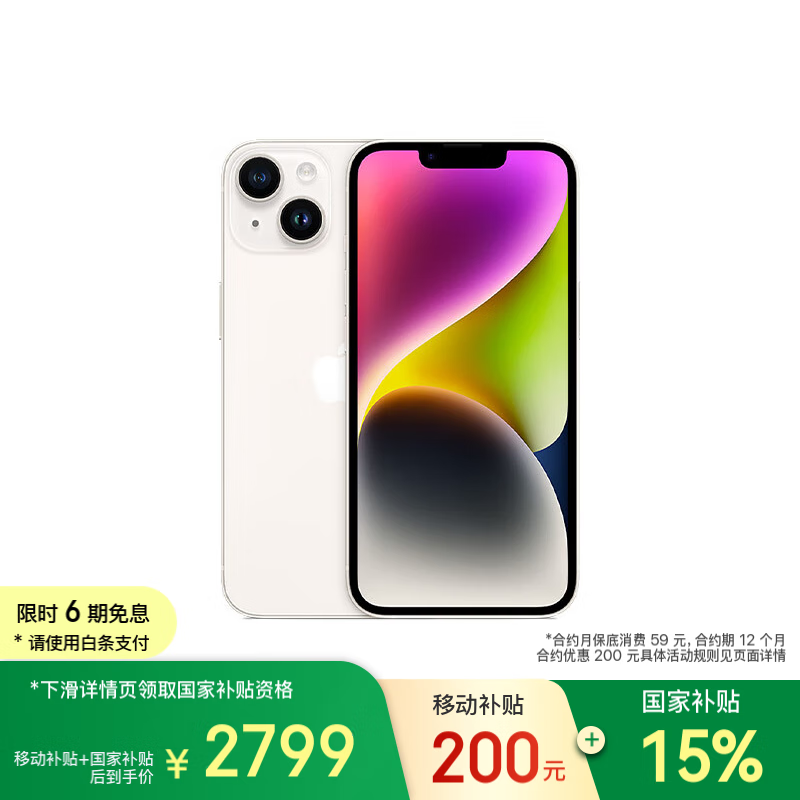 iPhone 14 128GB星光色手机京东优惠价2799元