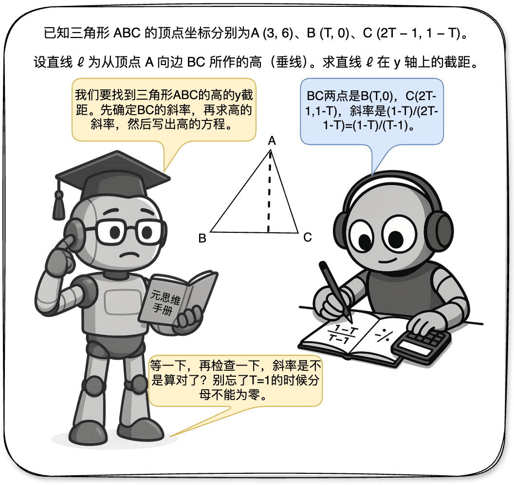 所谓 “元思维” (meta-thinking),即监控、评估和控制自身的推理过程,以实现更具适应性和有效性的问题解决,是智能体完成长时间复杂任务的必要手段。大语言模型(LLM)虽展现出强大推理能力,但如何实现类似人类更深层次、更有条理的 "元思维" 仍是关键挑战。