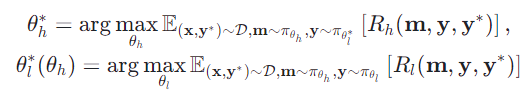 单轮场景下,考虑两个智能体和 ,团队通过迭代优化的方式最大化两个智能体各自的奖励,从而更新智能体们各自的权重: