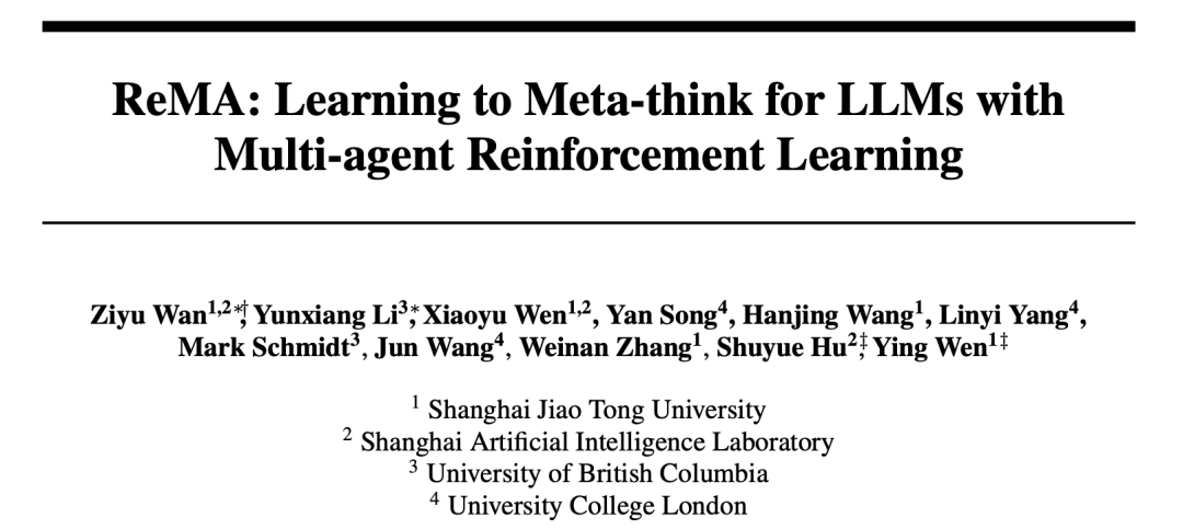 本文第一作者为上海交通大学计算机科学四年级博士生万梓煜,主要研究方向为强化学习、基础模型的复杂推理,通讯作者为上海交通大学人工智能学院温颖副教授和上海人工智能实验室胡舒悦老师。团队其他成员包括来自英属哥伦比亚大学的共同第一作者李云想、Mark Schmidt 教授,伦敦大学学院的宋研、杨林易和汪军教授,上海交通大学的温潇雨,王翰竟和张伟楠教授。