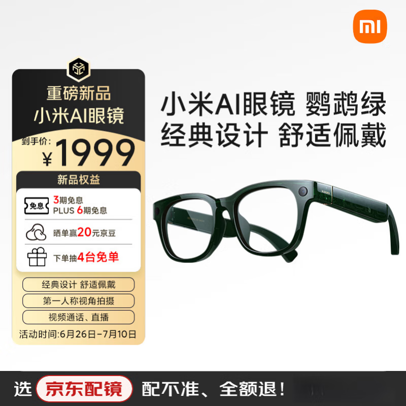 小米Xiaomi AI智能眼镜鹦鹉绿京东超值价