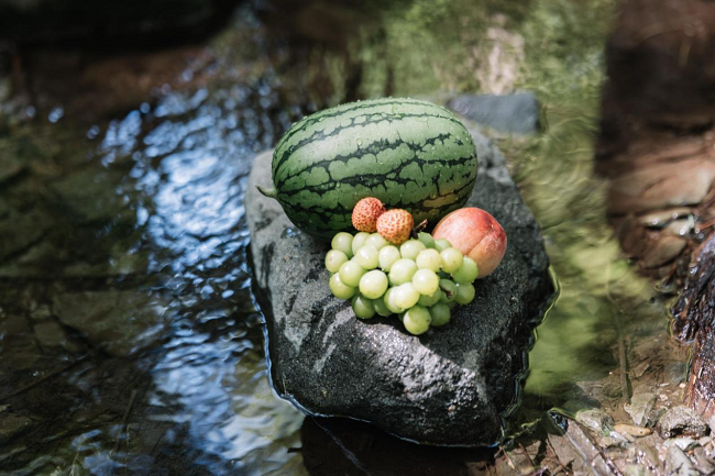 佳能EOS R100拍摄,1/200s、F1.8、ISO100、-0.3EV为了更好的夏日的氛围感人像照片,我尝试了低机位,虽然佳能EOS R100不带翻转屏,但想要低机位其实也不难,蹲下来就解决了,我在拍摄这张夏日人像时,思路就是想利用溪流、绿植营造清新氛围。浅景深虚化背景,突出模特。模特姿态慵懒自然,水果点缀增添生活感,光影柔和,佳能EOS R100可以很轻便易捕捉松弛瞬间。