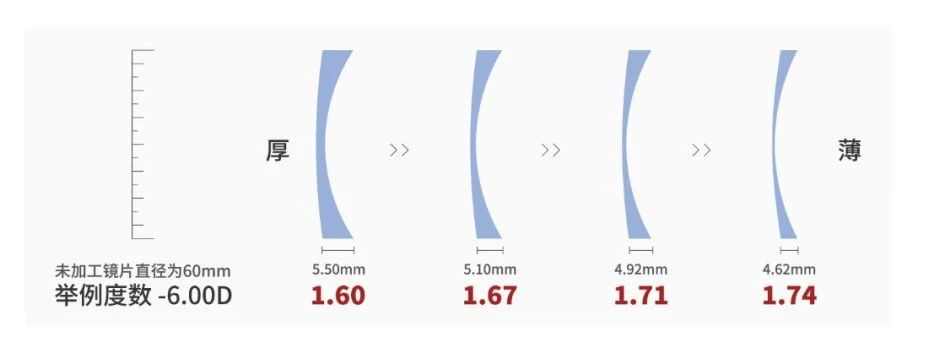有数据显示,对于高度近视600度的用户,如果使用直径60mm的1.71高折射率明月镜片,加工后镜片仅重12.4克。如果搭配小米AI眼镜裸架,总重大约仅为52.4克左右。这使得明月高折射率镜片,成为小米AI眼镜重要的生态协同伙伴。