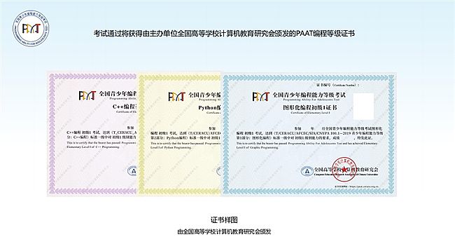 全国青少年编程能力等级考试(简称PAAT)由教育部主管的⼀级学会—全国高等学校计算机教育研究会主办,旨在引导青少年人⼯智能及编程科普教育科学化、规范化,为青少年发展、社会实践等提供统⼀ 、客观、公正的人工智能及编程能力水平证明。