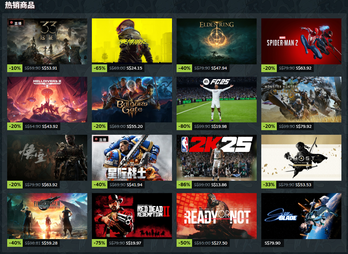 今年夏促活动中有多款热门大作参与促销,都是游戏热度高、口碑较好的游戏作品,而且折扣力度很大,值得入手!比如《赛博朋克2077》原价298元,现价104.30元,《无主之地3》原价199元,现价9.95元,《漫威银河护卫队》原价194元,现价29.4元,《小小梦魇2》原价118,现价11.8元,《黑神话:悟空》原价268元,现价214.40元,《对马岛之魂》原价398元,现价266.66元,《艾尔登法环》原价298元,现价208.6元。