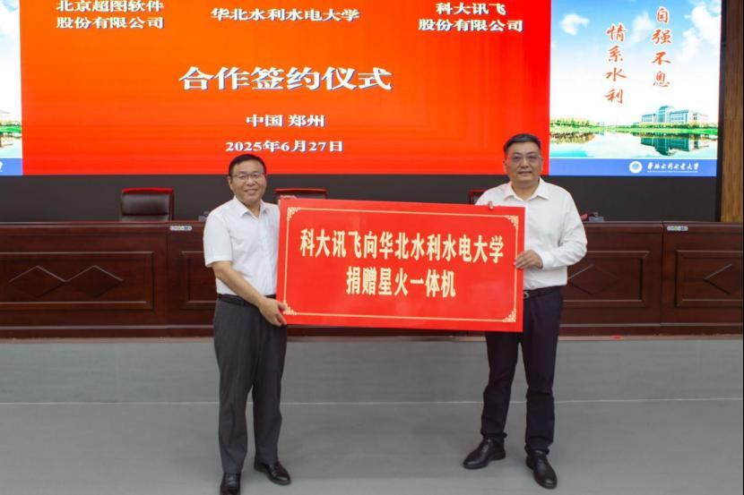 为促进数字孪生水利“产学研用”协同发展,推动“人工智能+水利”行业高质量发展,6月27日下午,科大讯飞与华北水利水电大学、北京超图软件股份有限公司(以下简称“超图”)签署战略合作协议。三方将共同筹建华水数智水利技术创新中心,并在水利人才培养、科学研究、学科专业建设等方面开展深度合作。