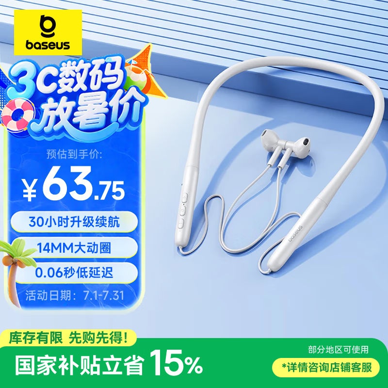 倍思P1挂脖式蓝牙耳机促销,到手价63.75元