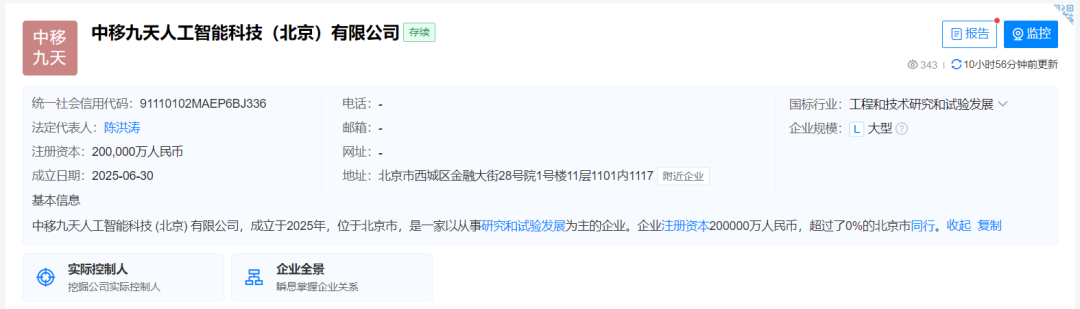 在人工智能加速渗透千行百业的当下,国内人工智能热潮持续升温,三大运营商也纷纷加码人工智能赛道,加速布局相关产业。6月30日,中国移动正式成立“中移九天人工智能科技(北京)有限公司”,注册资本达20亿元,法定代表人为陈洪涛。