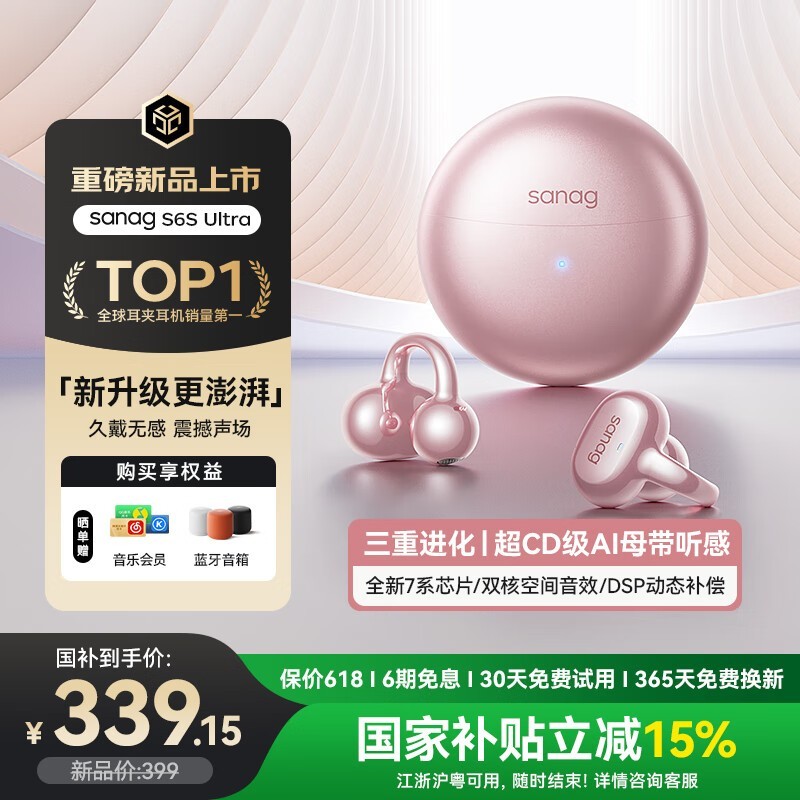 塞那S6S Ultra骨传导耳机限时特惠339元