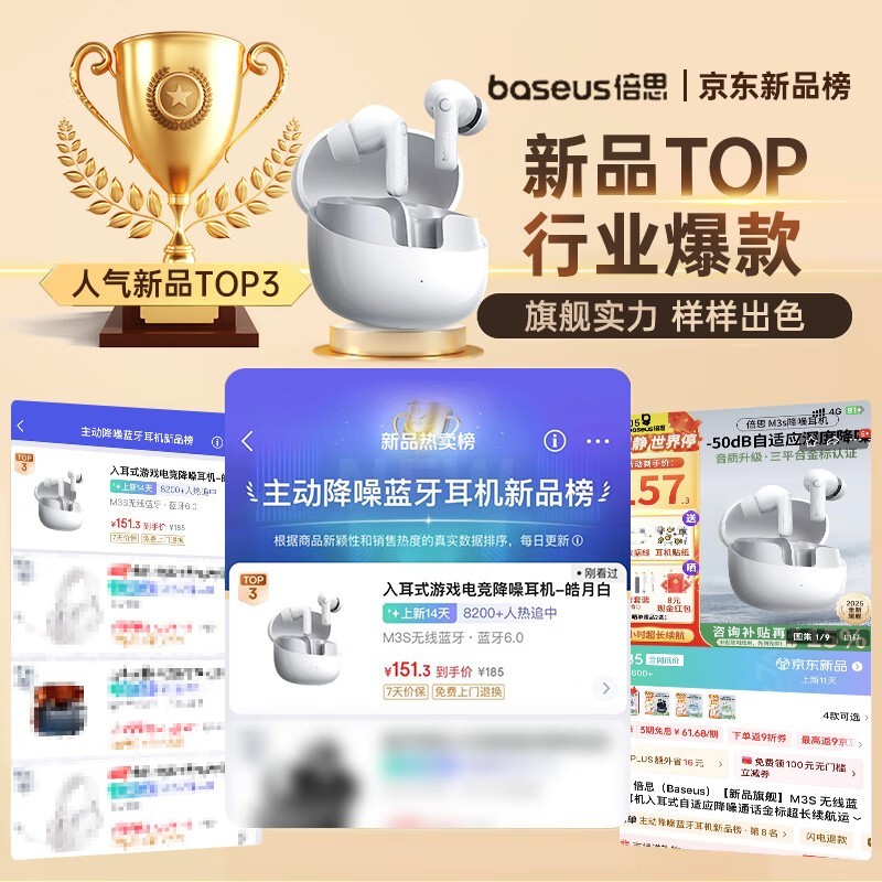 倍思M3S入耳式蓝牙耳机京东优惠价152元