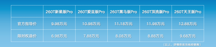 2026 款的启辰大 V 一共有 5 款车型,限时权益价为 6.98万-9.68万元。