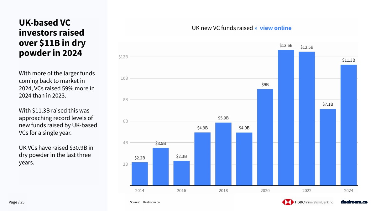 鉴于2024年获得的干粉资金达到了创纪录的水平,我们可以预计英国风投将在2025年表现强劲。