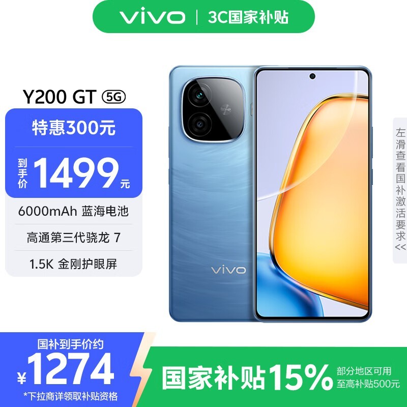 vivo Y200 GT 5G手机京东促销,到手价1274元