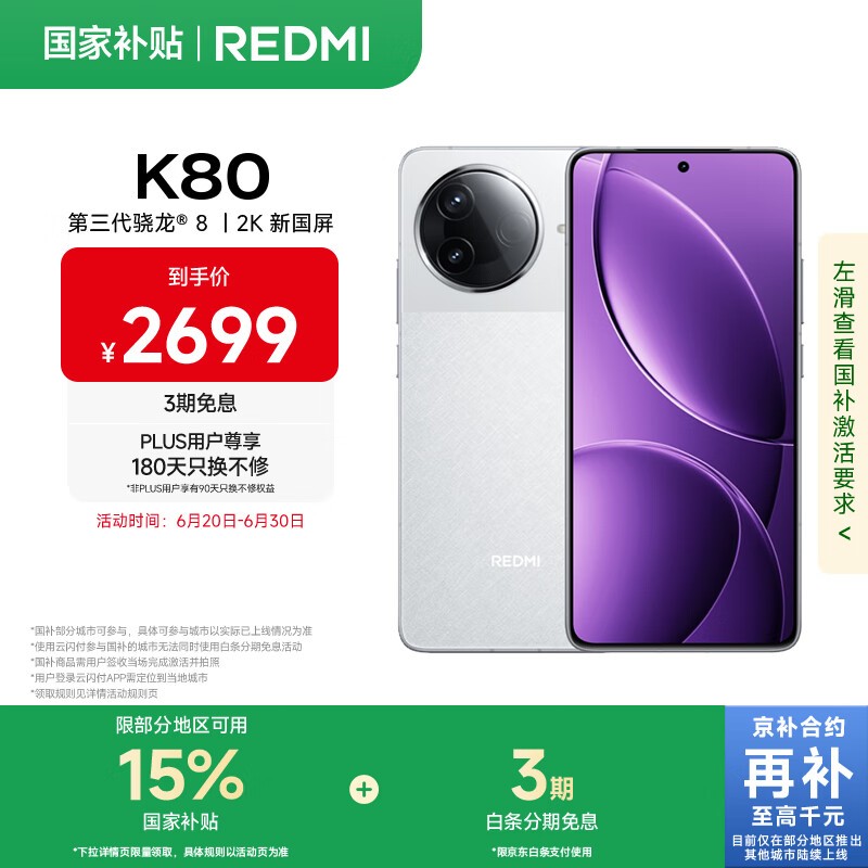 红米K80 5G(12GB+512GB)京东促销,到手2294元