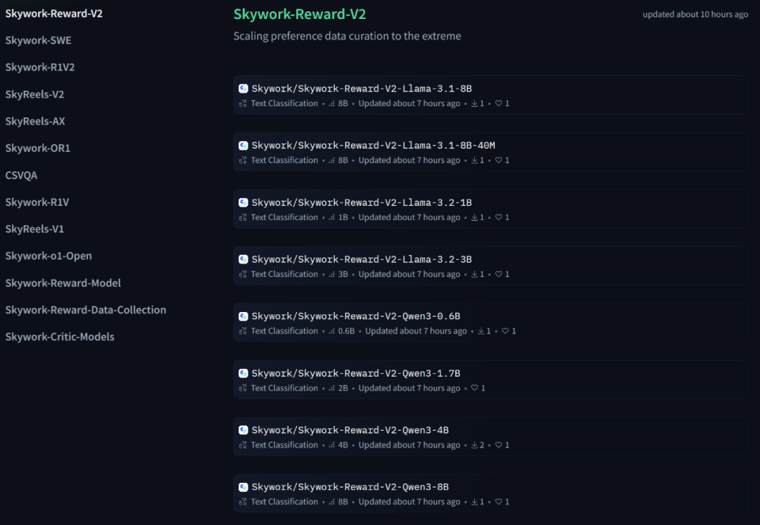 HuggingFace 地址:https://huggingface.co/collections/Skywork/skywork-reward-v2-685cc86ce5d9c9e4be500c84