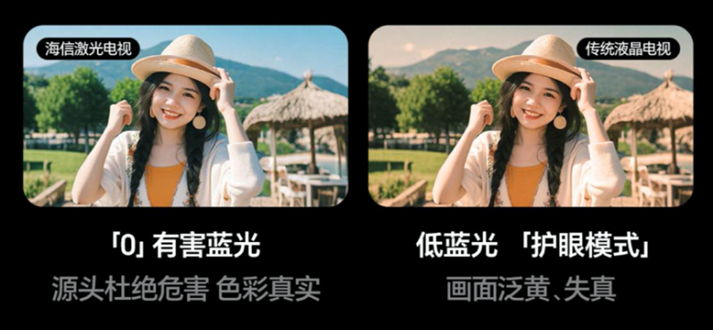 如果想要一台真正护眼的大尺寸电视,行业唯一实现0有害蓝光、0屏幕辐射、0眩光、0反光、0频闪的电视产品——海信激光电视星光S1纯享版2026款是不二之选。该机型的护眼优势首先体现在光源设计上:它采用纯净激光光源,将蓝光波峰精准控制在455nm以上,完全避开了415-455nm的有害短波蓝光波段,使屏幕光谱与自然光高度一致,并获得百年莱茵0有害蓝光认证。这种从源头规避有害蓝光的设计理念,确保了护眼效果不会以牺牲画质为代价。