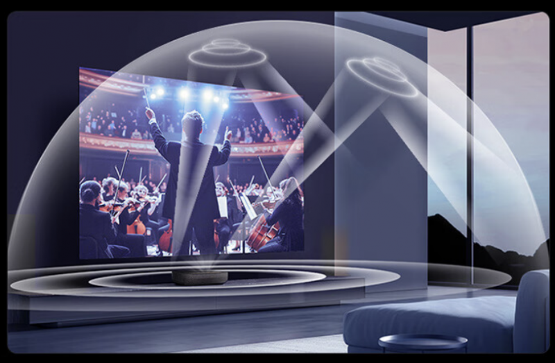 除了护眼外,海信星光S1纯享版2026款的其他性能也相当出众。其采用与全球90%影院同源的DLP数字影院放映技术,这项奥斯卡认证的放映技术配合RGB纯净激光光源,实现了110%DCI-P3电影级色域表现,色彩还原精准度超越同级别液晶电视。屏幕上,菲涅尔无源抗光屏通过1对1定制光学结构,仅吸收主机方向的成像光线,在保证画面明亮清晰的同时有效抑制眩光。在音质表现上,这款电视采用帝瓦雷音响系统,由法国声学工程师团队精心调校,实现了高频清亮通透与低频浑厚震撼的完美平衡。其创新性地融合了巴赫号角天空音90度垂直发声技术和蓝鲸腔仿生前出音设计,通过科学的声学结构优化,确保声音传播路径无阻碍直达人耳,最终为用户呈现出媲美专业影院的沉浸式听觉体验。