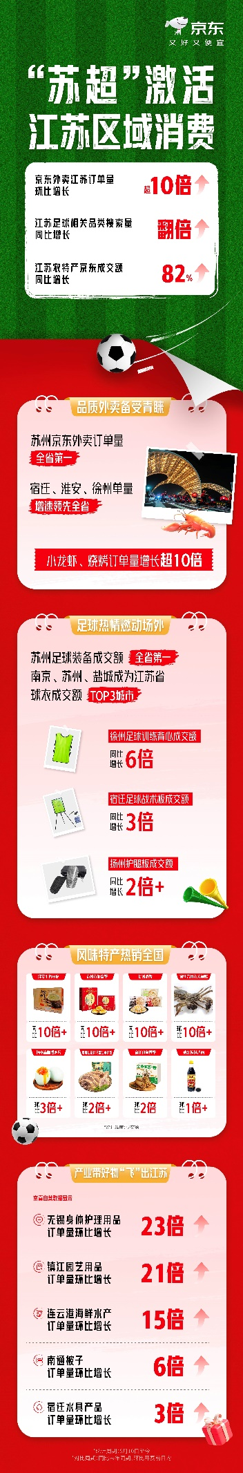“苏超”开赛以来,京东外卖江苏订单增10倍