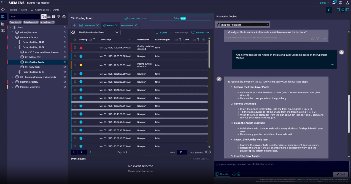 西门子Insights hub 中的 Production Copilot提供清晰的操作员指导,通过数据和经验推荐行动,消除对下一步的猜测(图片来源:西门子)