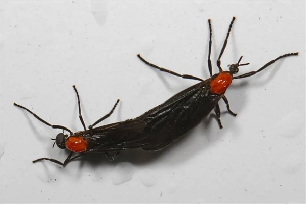 “爱情虫”的学名是长钳襀毛蚊(Plecia longiforceps),它是毛蚋科昆虫,这种虫子能够以交尾姿态合体飞行而闻名,而且经常这样合体出现,因此得名“爱情虫”。